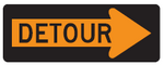 When temporary directional signs and temporary street name signs are used in conjunction with detour routing, these signs may have a black legend and border on fluorescent orange background.