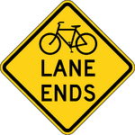 Support. Where a warning sign is appropriate, the Bicycle Lane Ends (W9-5) warning sign is intended to alert road users that a bicycle lane is ending and that bicycles will share or occupy the travel lane after merging.
